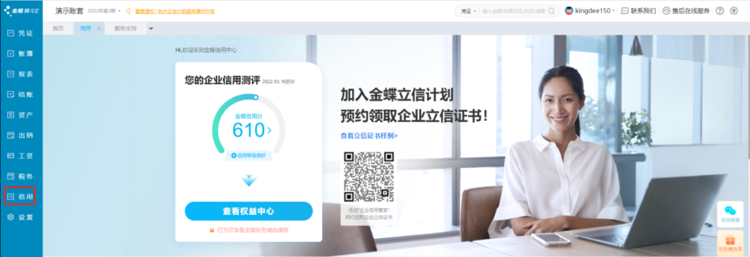 云會計更提供信用模塊支持, 根據(jù)企業(yè)財務(wù)數(shù)據(jù)狀況,給予企業(yè)信用分?jǐn)?shù)。當(dāng)財務(wù)數(shù)據(jù)進(jìn)行授權(quán)后,即可進(jìn)行企業(yè)信用評估。線下金融機構(gòu)據(jù)此提供貸款服務(wù),無需抵押,在線操作, 高效解決小微企業(yè)資金難題。